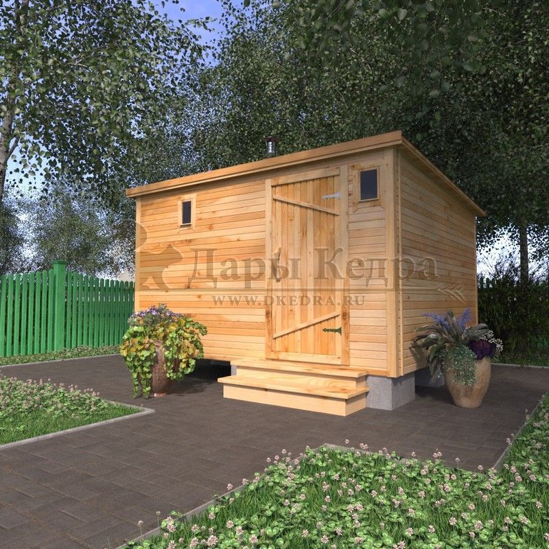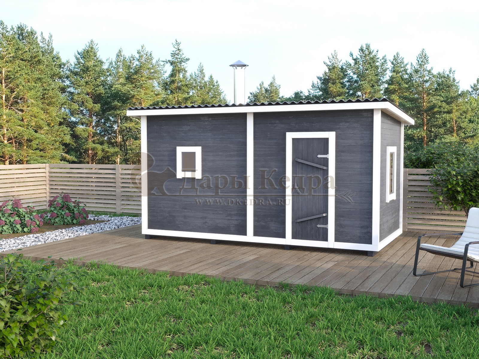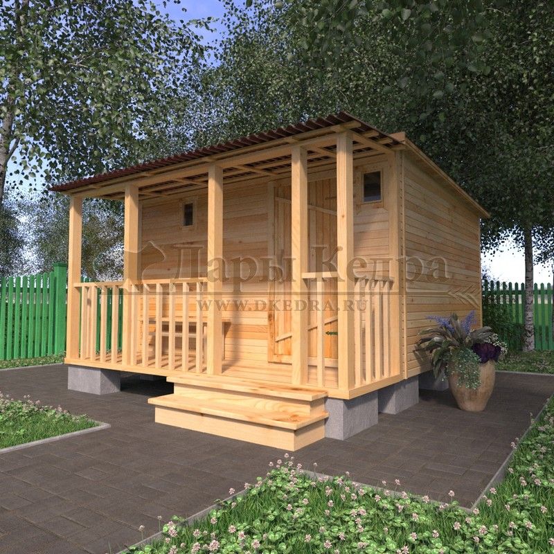 Каркасно-щитовая баня из кедра «Мини» с верандой Это классическая прямоугольная модель бани с двумя отделениями: парилкой и раздевалкой. Для удобства пользования раздевалка оснащена лавочкой и вешалкой. Парилка оборудована двухуровневым открытым полком и печью. За счет небольшой конструкции баня нагревается в течении 30 минут. На просторной веранде можно оставить вещи или отдохнуть после парения. Каркасно-щитовую баню можно заказать как в готовом, так и в разборном варианте. В разборной модели готовые щиты из кедра быстро собираются в полноценное строение, что также позволяет исключить лишний строительный мусор. Такая баня не требует полноценный фундамент, поэтому при необходимости ее можно перенести в другое место. Обращаем Ваше внимание, что в стандартную комплектацию бани входит полок открытого типа в парной. Дополнительно можно заказать полок закрытого типа или лавку! Древесина кедра насыщена эфирными маслами и фитонцидами, которые активируются при воздействии температур. Таким образом, парение в каркаско-щитовых банях из кедра становится еще полезнее.