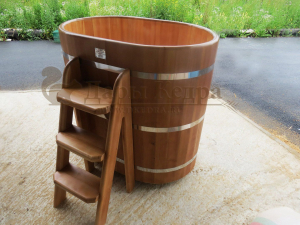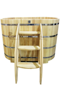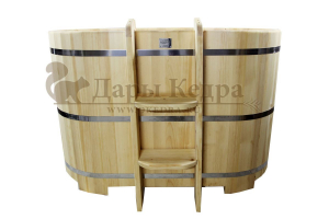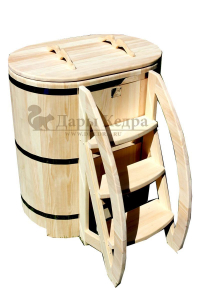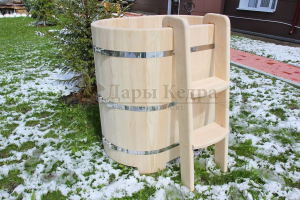 Это герметичная емкость для воды из кедра, которая используется для отдыха и охлаждения тела после процедур парения. Купель оснащена лавочками, приставной и внутренней лестницей из кедра. За счет стяжных болтов обручи из нержавеющей стали плотно прилегают к кедровой купели. Это позволяет равномерно распределять нагрузку воды и сохранить форму изделия в период эксплуатации. При правильном уходе купель для бани не рассыхается и не подвергается гниению. Овальная купель подходит для уличного и комнатного использования.