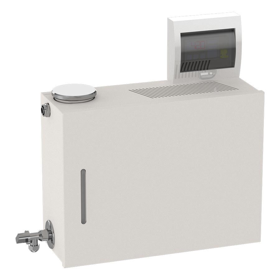 Парогенератор проточный c выносным/встроенным цифровым пультом управления, 9 кВт Проточные парогенераторы подключаются к водопроводу и автоматически добавляют воду в прибор при ее расходовании. Парогенератор служит для образования пара в саунах, хамамах, банях и душевых кабинах. Мощность стоит выбирать в зависимости от объема парной. Работа парогенератора осуществляется за счет встроенного или выносного пульта управления (на ваш выбор). Он позволяет устанавливать температуру, мощность и время процедур парения. При достижении необходимой температуры происходит автоматическое прекращение подачи тепла для нагрева воды. При снижении температуры более чем на 3°С температурный датчик снова включает подогрев. Таким образом время непрерывной работы парогенератора составляет более 12 часов.